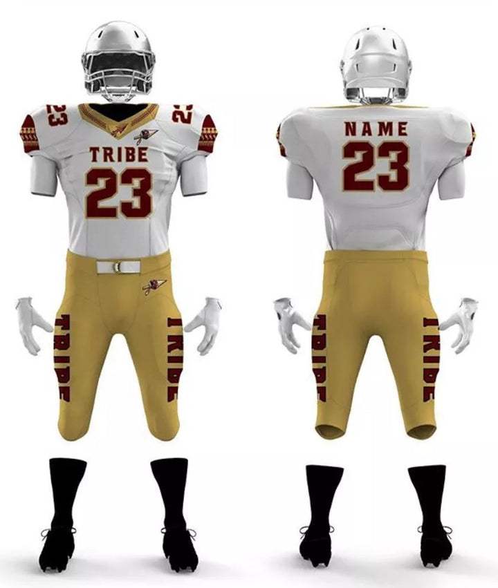 Present your team with visual polish and finesse in the Customized American Football Uniform ZWA-046. Design meticulously crafted custom football uniforms, from jerseys that convey refined style to precisely coordinated pants and pads. Forge an enduring presence with premium football apparel that exudes sophisticated taste and effortless elegance.