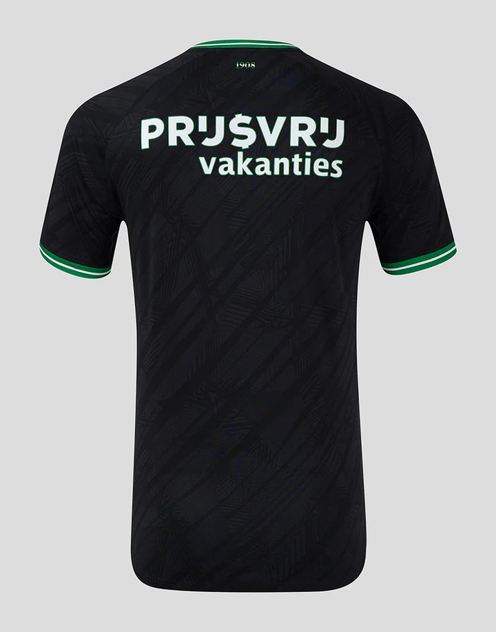 Conquer every away game with the Feyenoord Men's Away Soccer Kit 2024-2025. This jersey isn't simply an alternative; it's a statement of intent, a visual representation of Feyenoord's ambition echoing across enemy stadiums. The striking black design, accented with bold red and white details, commands attention, a reminder of De club aan de Maas' unwavering resolve. Crafted from high-performance fabric, this Eredivisie kit ensures peak comfort and breathability, mirroring the team's relentless pursuit of victory, even on unfamiliar turf. Whether leading the chant or dictating the play, this Feyenoord away kit is your armor, your muse. It's more than a uniform - it's a testament to your unwavering support, a promise to stand with the team through every challenge, every triumph.