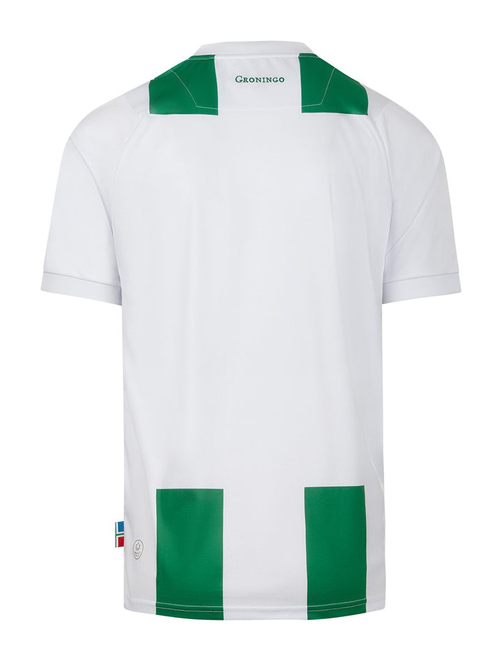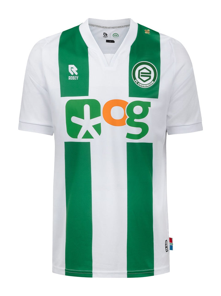 Channel the pride of the North with the Groningen Men's Home Soccer Kit 2024-2025. This jersey is a testament to the unwavering spirit and fighting spirit that defines FC Groningen, ready to ignite your passion for the beautiful game. The iconic green and white stripes, a symbol of the club's rich heritage, are reimagined with a modern flair, reflecting their dynamic style of play. Crafted from cutting-edge fabric, this Eredivisie kit ensures peak performance, mirroring the team's tireless work ethic on the pitch. Every detail, from the embroidered crest to the subtle stitching, whispers tales of triumphs and traditions. Wearing this Groningen home kit isn't just about supporting a team, it's about embracing a legacy, a sense of community that echoes through the Euroborg stadium.