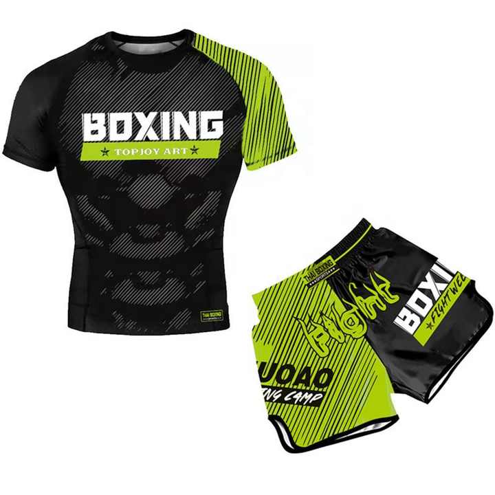 - Complete Striking Set: Includes one short-sleeve compression top and one pair of fight shorts.