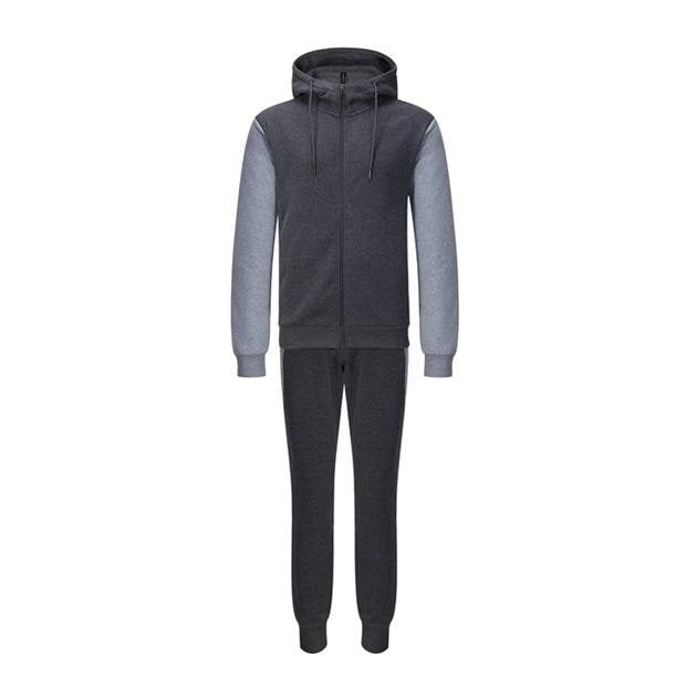 The full-zip hoodie features a stylish colorblock design with contrasting sleeves and a classic hood for added warmth and style. With convenient front pockets, you can easily carry your essentials. The matching track pants offer a contemporary look with a comfortable fit, thanks to the elastic waistband and ribbed cuffs.