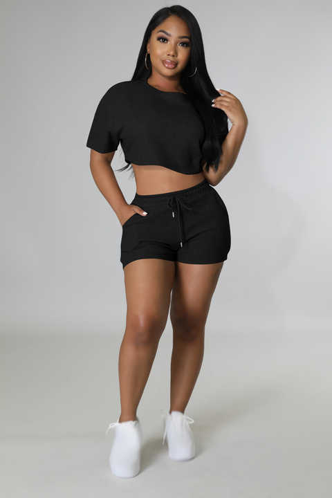 Zees Wears Essential 2-Piece Short Set - Crop Top & Drawstring Shorts