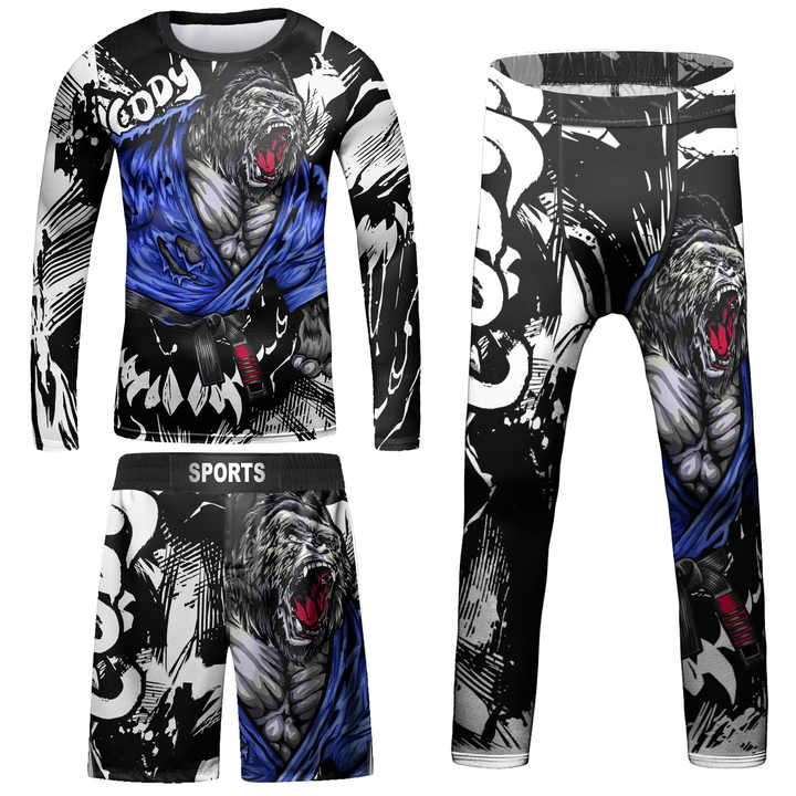 Zees Wears Gorilla Grappler Compression Set - Long Sleeve Rash Guard, Spats & Shorts