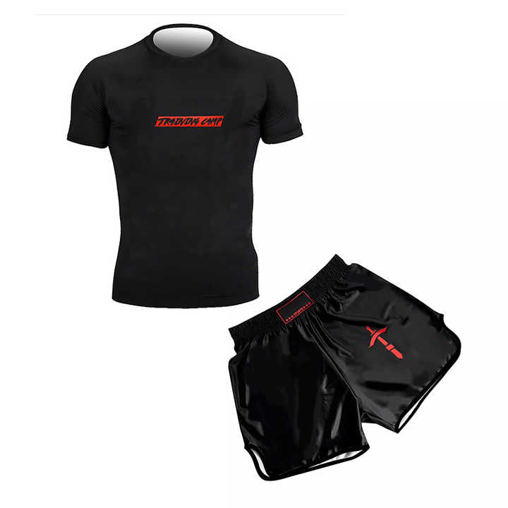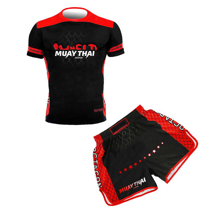 - Complete Muay Thai Set: Includes one pair of Muay Thai shorts and one short-sleeved rash guard.